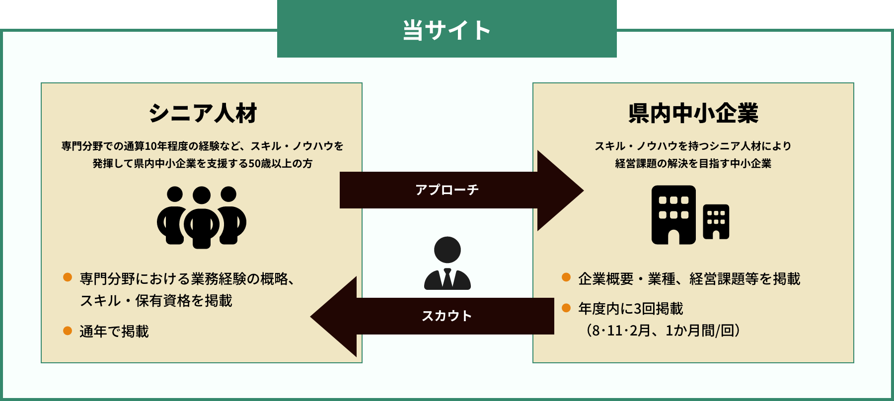 本事業について、職業経験を生かしたいシニアの方と、企業の皆様それぞれに向けた詳しい情報をご覧いただけます。